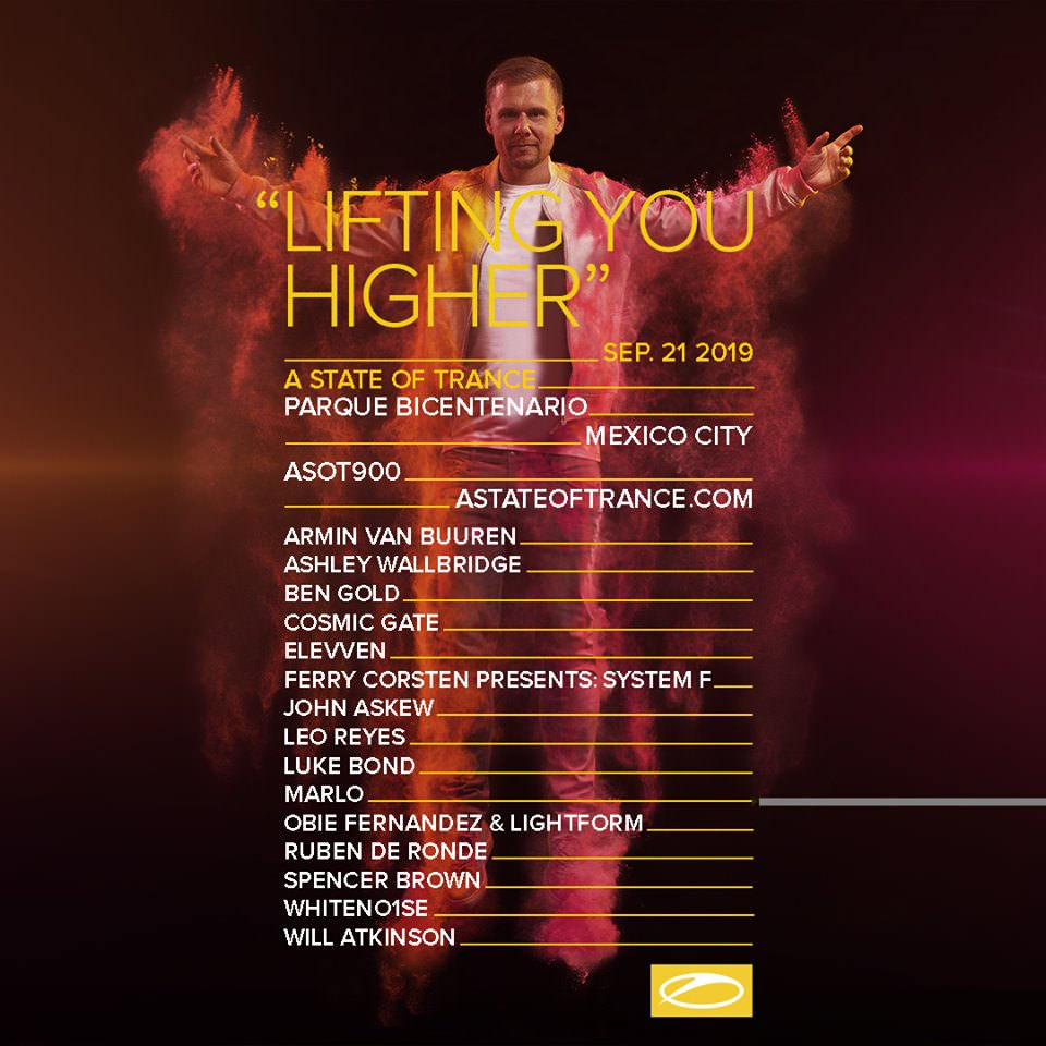 El tan ya conocido radioshow ASOT del DJ/Productor Armin van Buuren regresa este sábado 21 de septiembre a la Ciudad de México en el Parque Bicentenario con su episode #900 tema "Lifting you Higher".